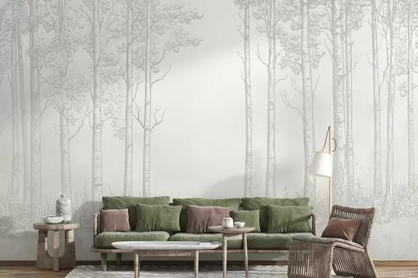 Fototapet Skov med birketræer, minimalisme, natur, grøn farvepalet Nr. w04009v1