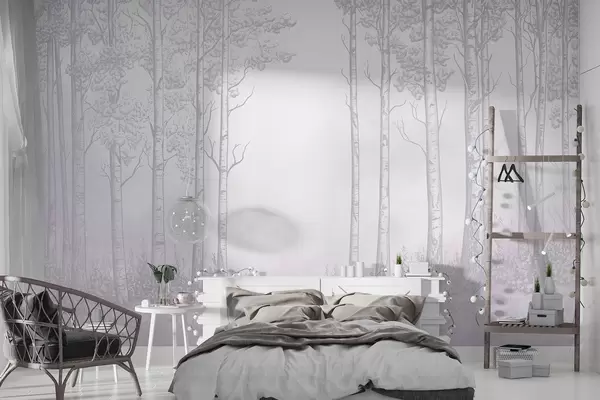 Fototapet Skov med birketræer, minimalisme, natur, pink farvepalet Nr. w04009v2