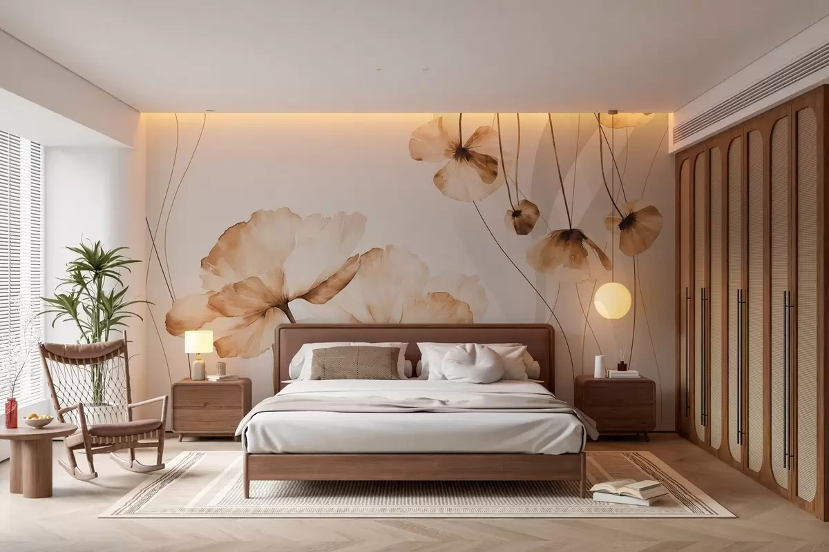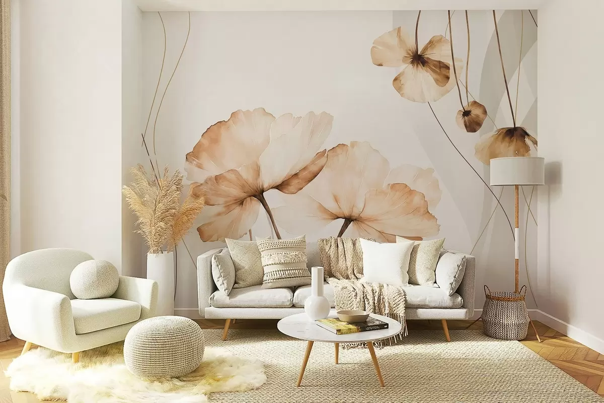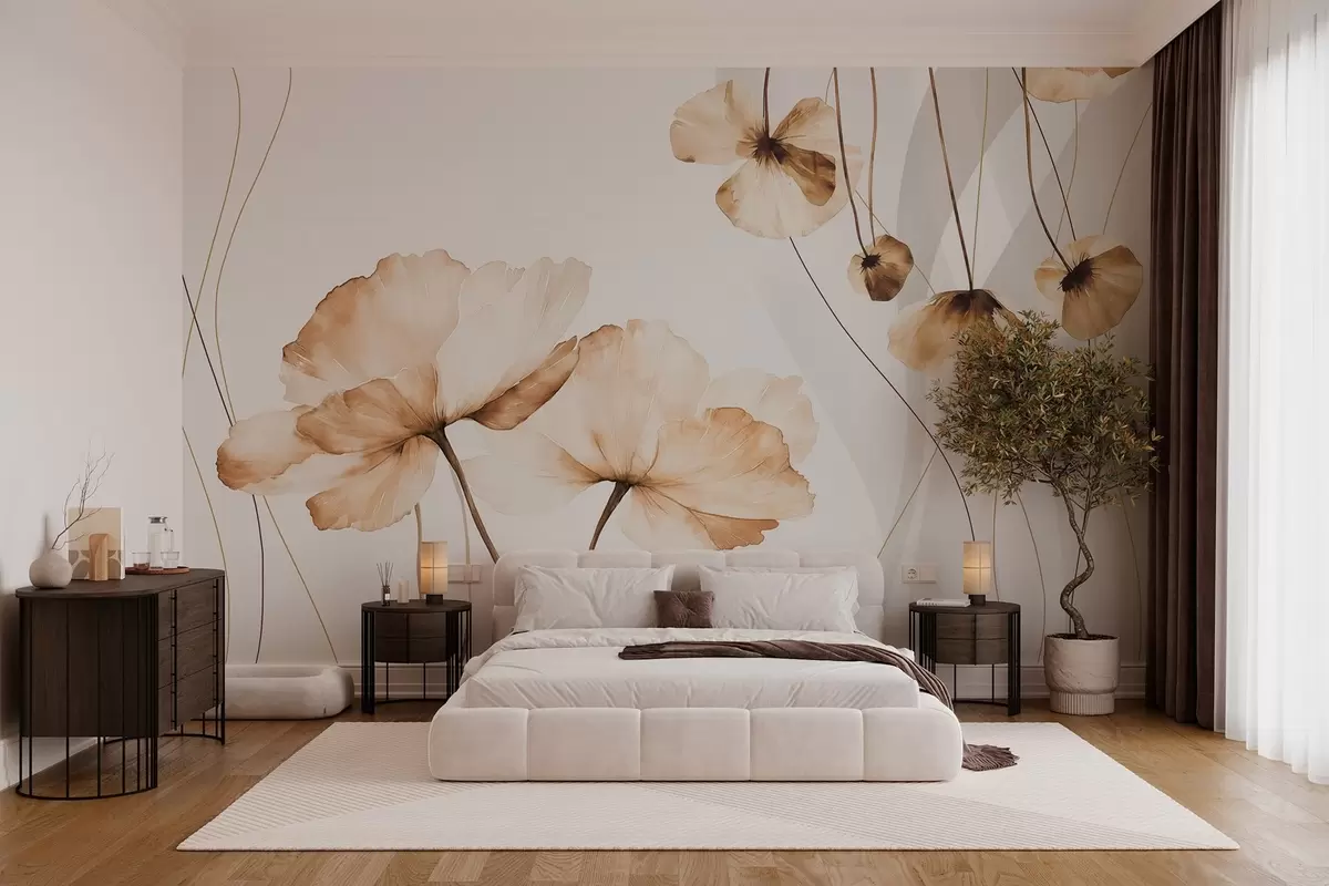 Fototapet blomster i akvarel-stil i brune toner Nr. w04026