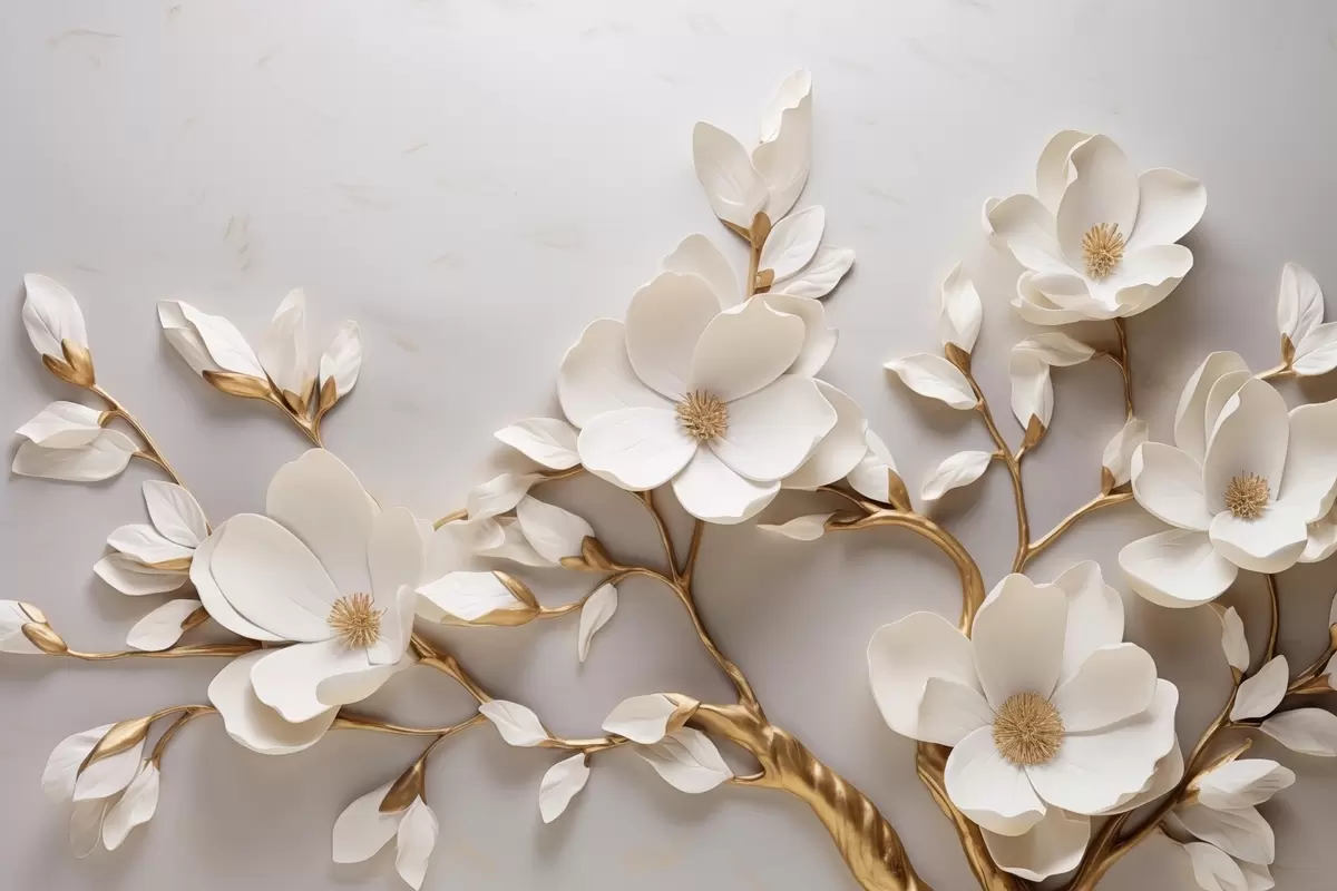 Fototapet Elegante reliefblomster med stilke i bløde toner danner en rolig, harmonisk scene Nr. w04039