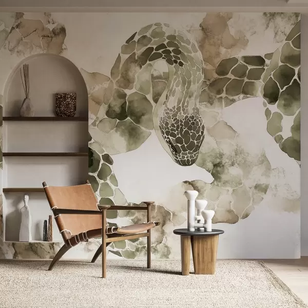 Fototapet Slangesilhuet, akvarel-stil, olivenfarver Nr. w04113v3