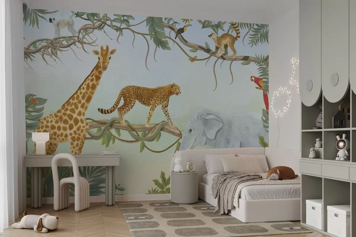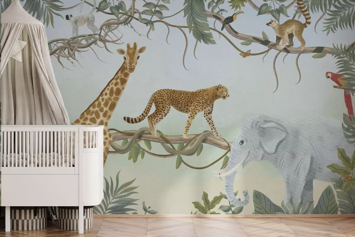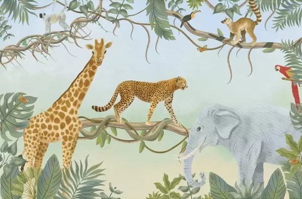 Fototapet Jungleillustration med giraf, gepard og elefant Nr. w04194