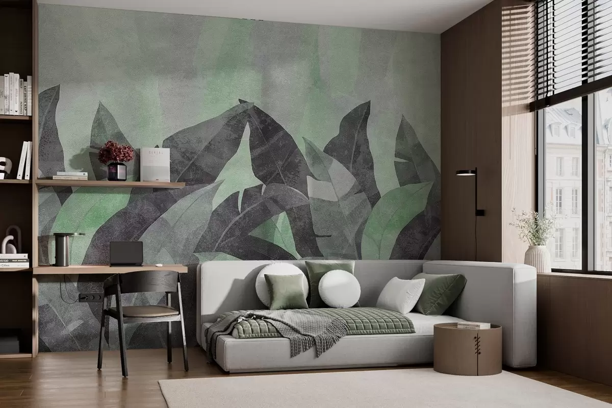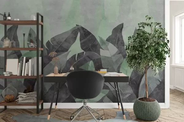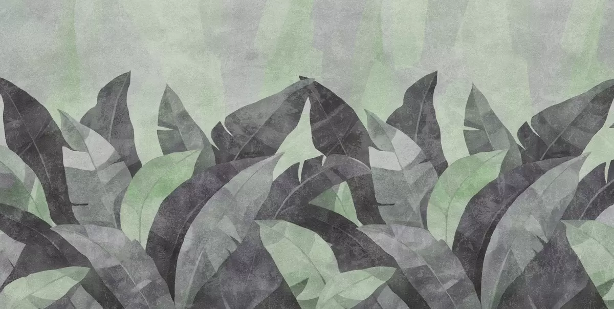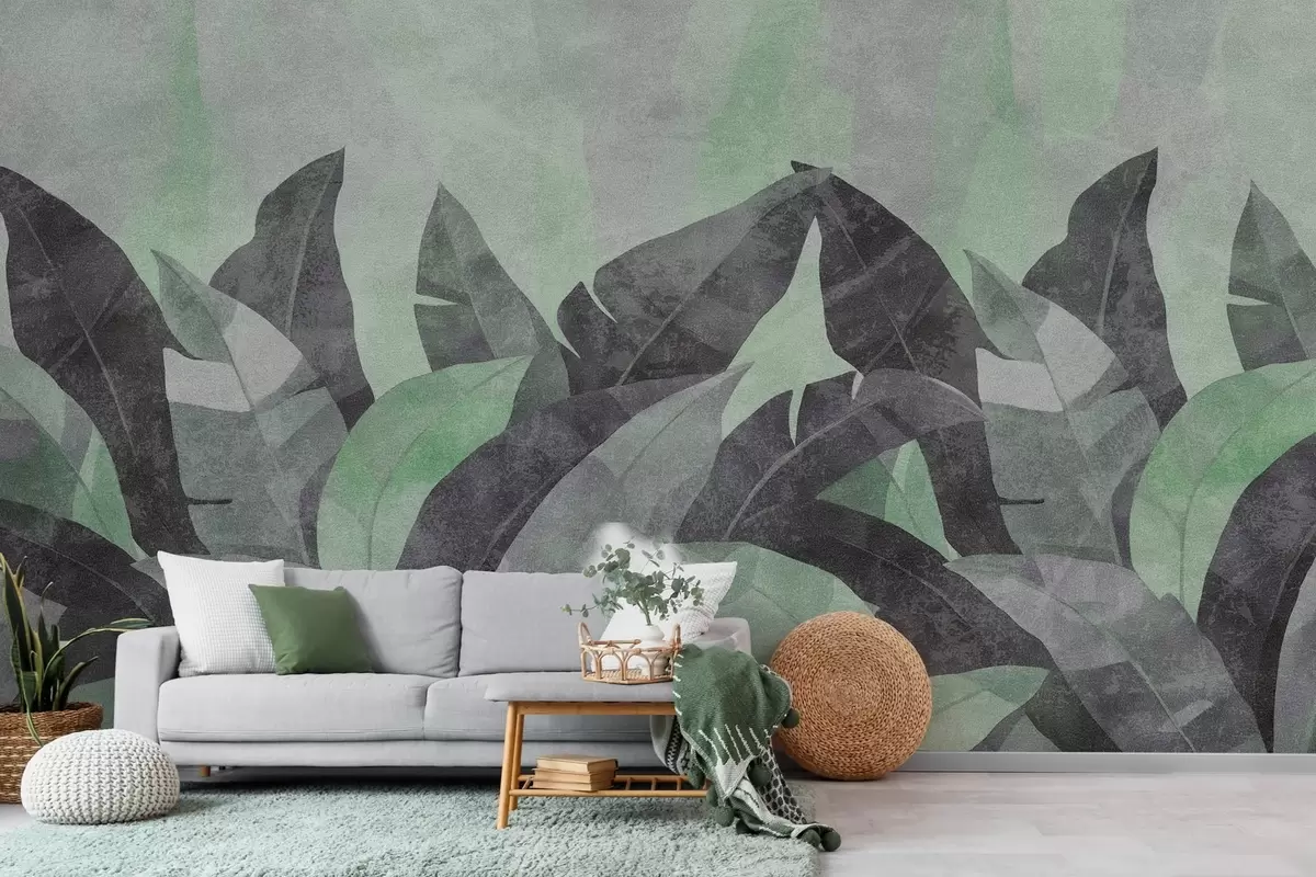 Fototapet strukturerede bananblade i grønne og grå nuancer Nr. w04285v1