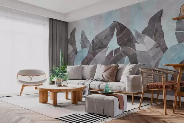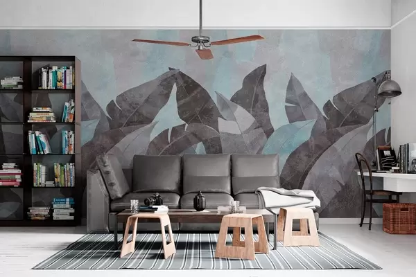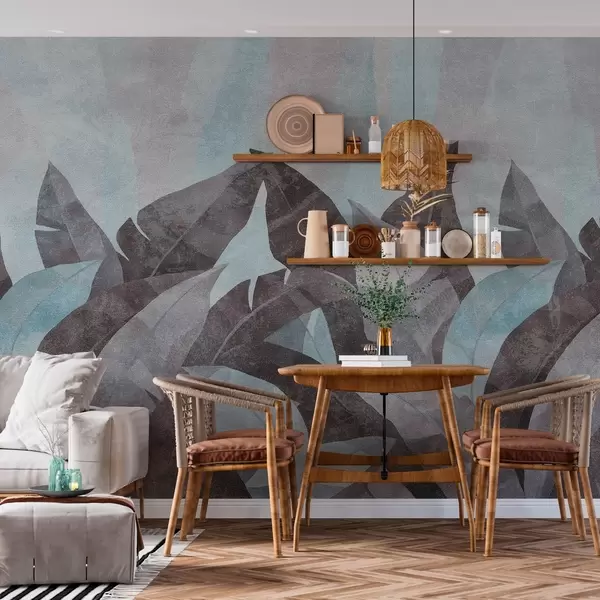 Fototapet strukturerede bananblade i blå og grå nuancer Nr. w04285v2