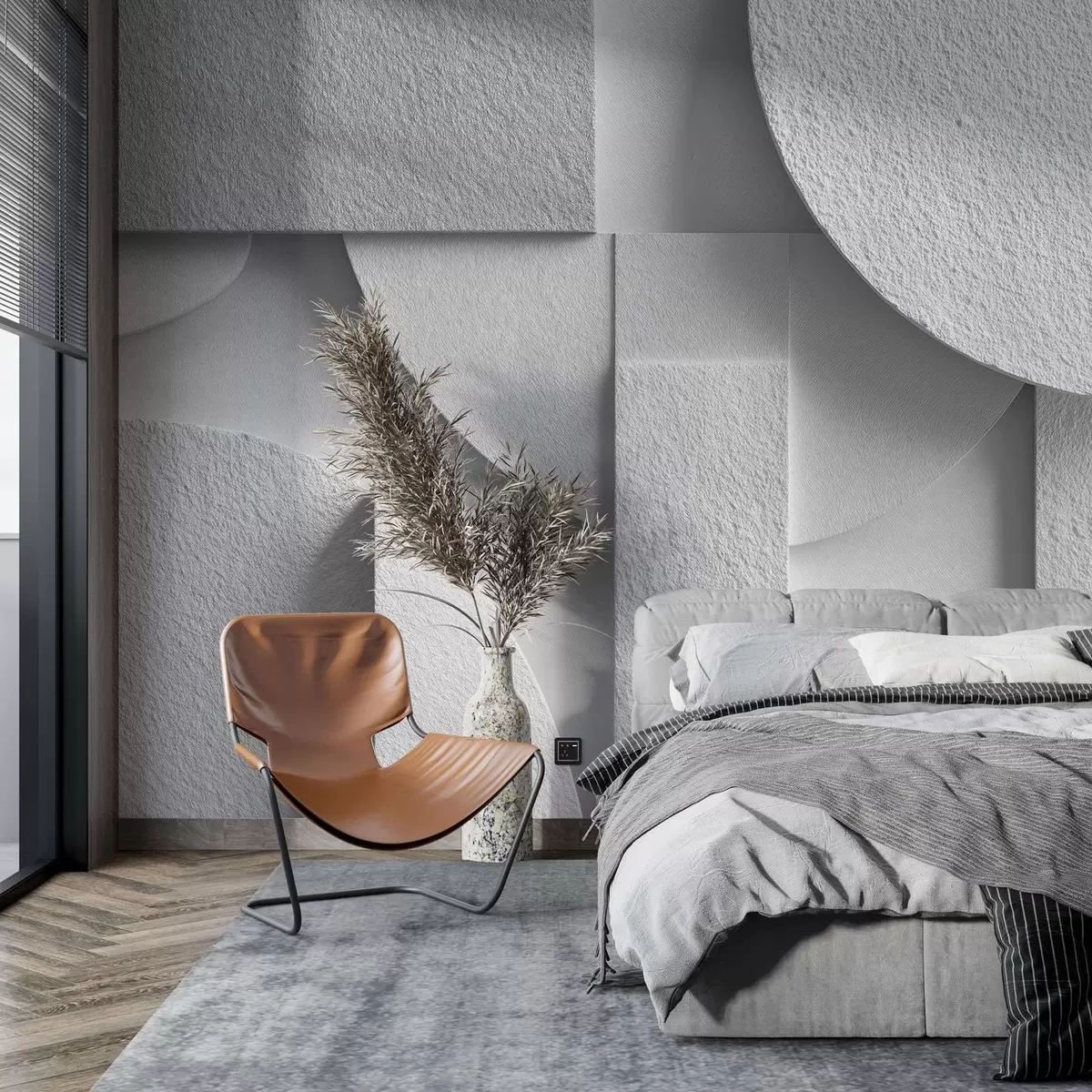 Fototapet Abstrakt komposition med hvide tredimensionelle geometriske former Nr. w04395v1