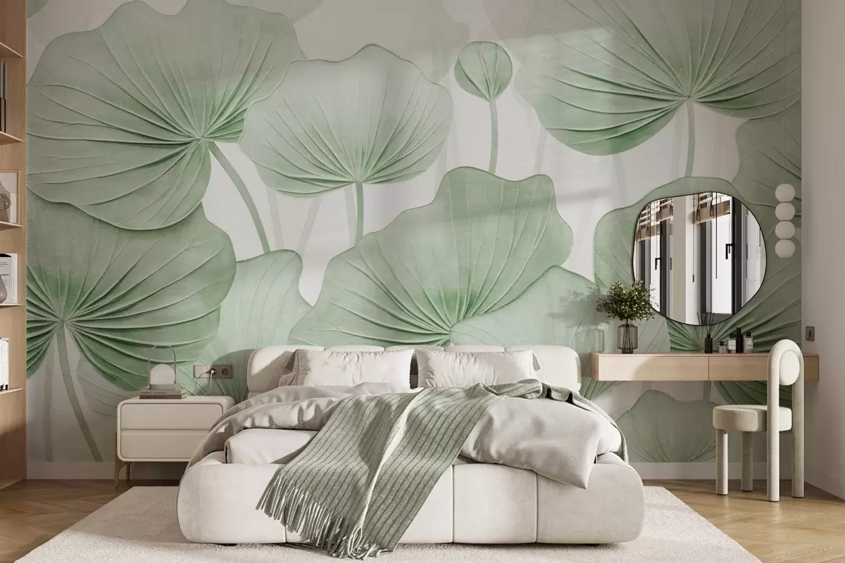 Fototapet Lotusblade med imiteret nødlidende tekstur Nr. w04412