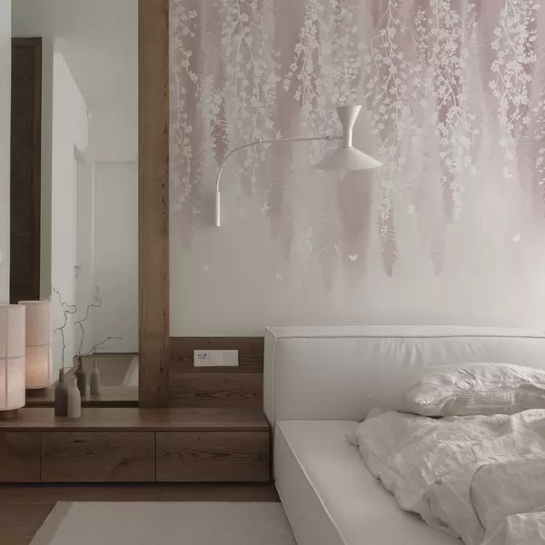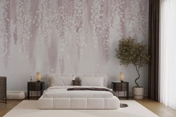 Fototapet Pink version af grene med hvide blomster Nr. w04417v1