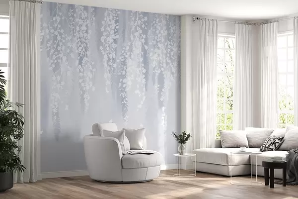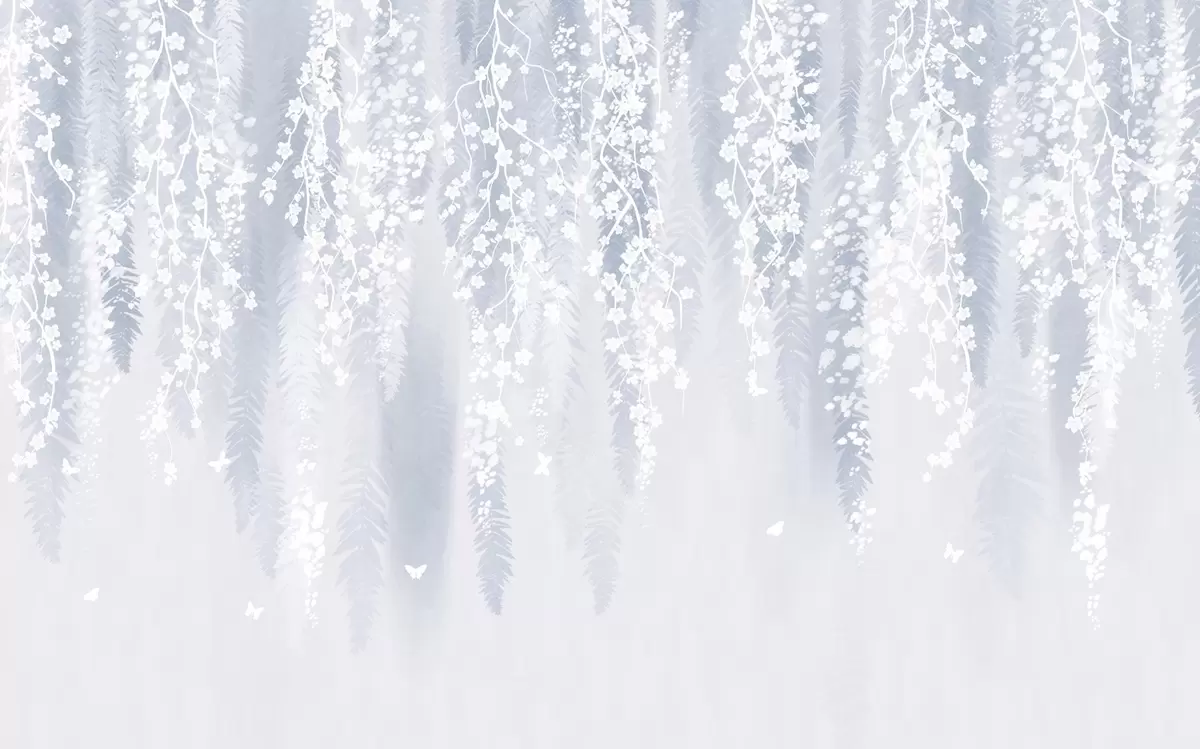 Fototapet Cool blå version af grene med hvide blomster Nr. w04417v2