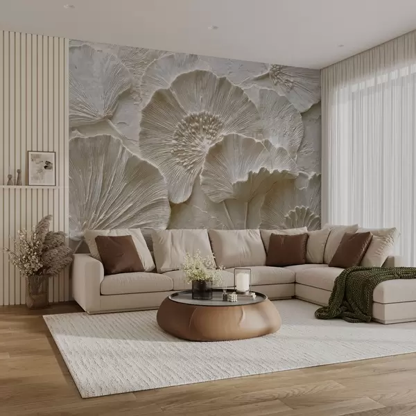 Fototapet Voluminøse ginkgoblade i en let præget stil Nr. w04444