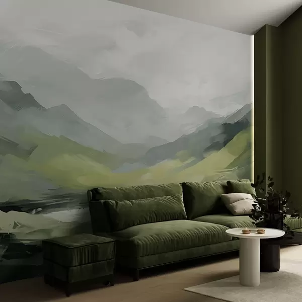 Fototapet Abstrakt bjerglandskab i grønne nuancer Nr. w04447