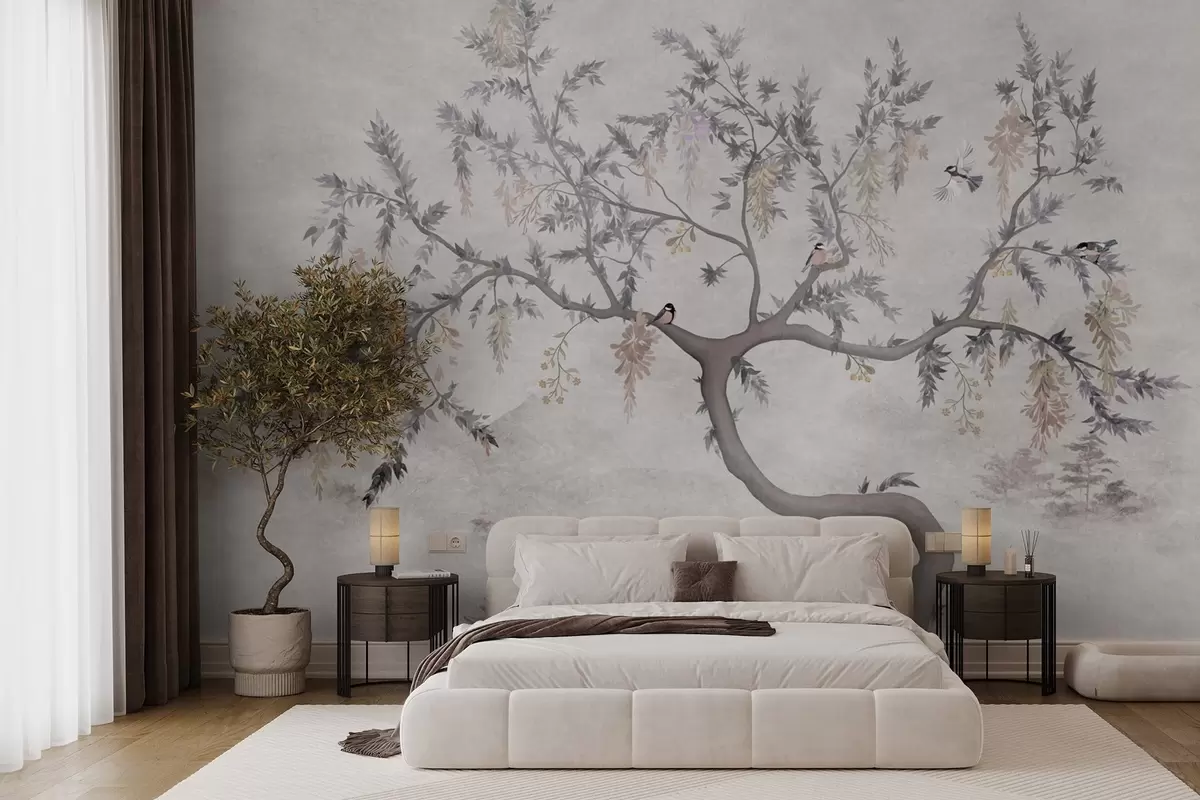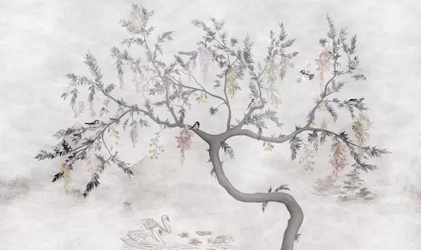 Fototapet Trægren med fugle i orientalsk stil Nr. w04456