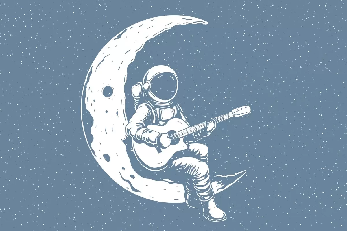Fototapet Kosmonaut, måne, guitar Nr. w04514v2
