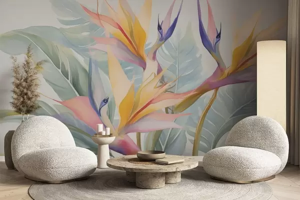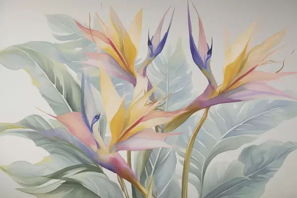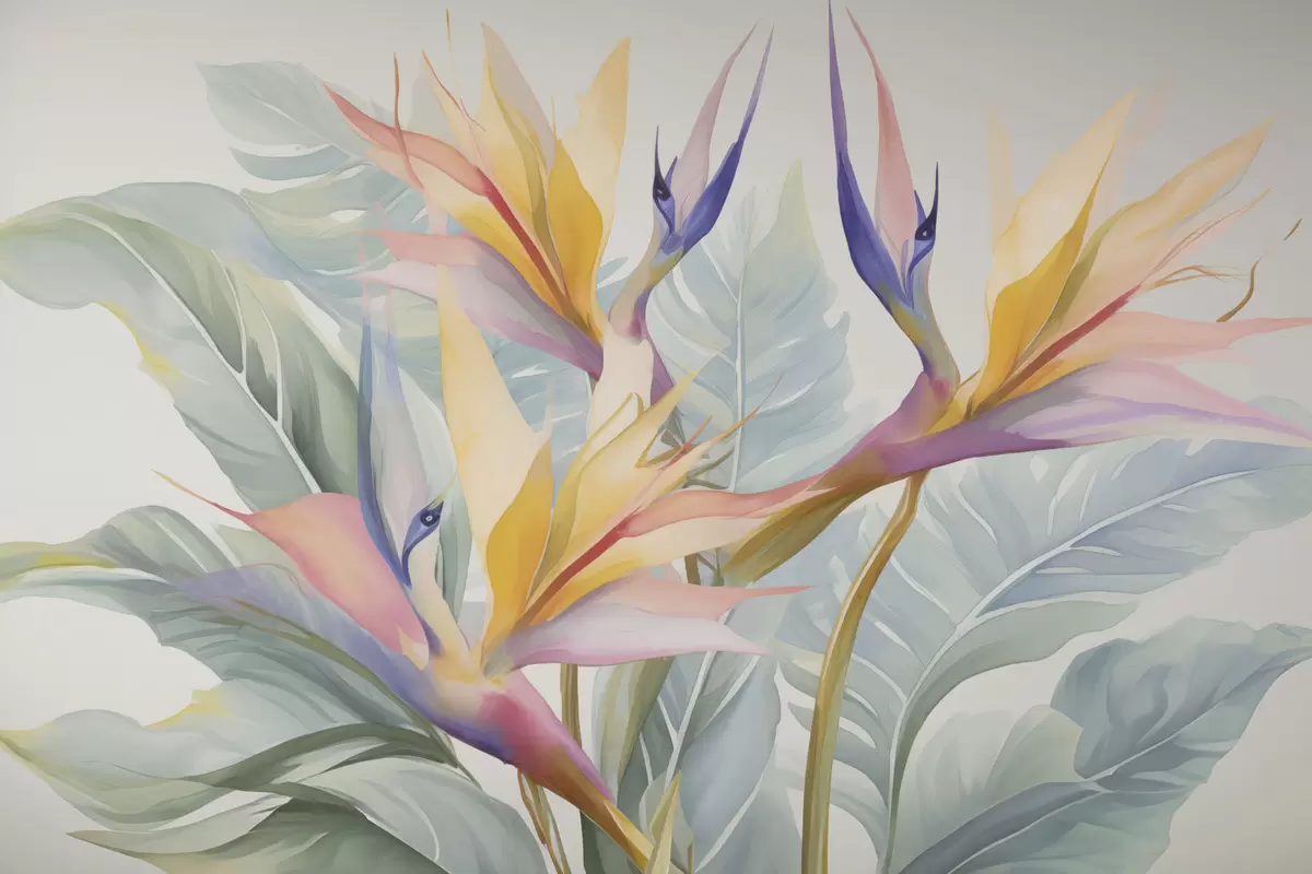 Fototapet Strelitzia blomster og blade Nr. w04527