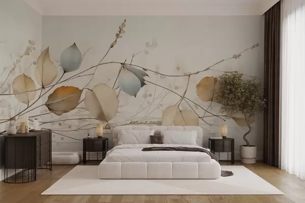 Fototapet Delikate grene med blade i beige nuancer Nr. w04579