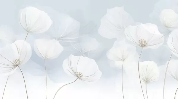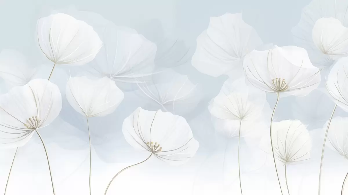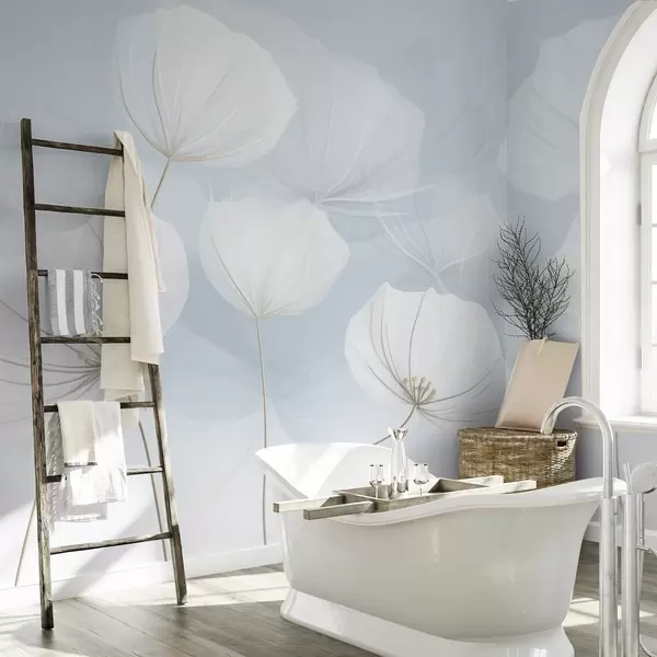 Fototapet Luftige hvide blomster på blå baggrund Nr. w04580