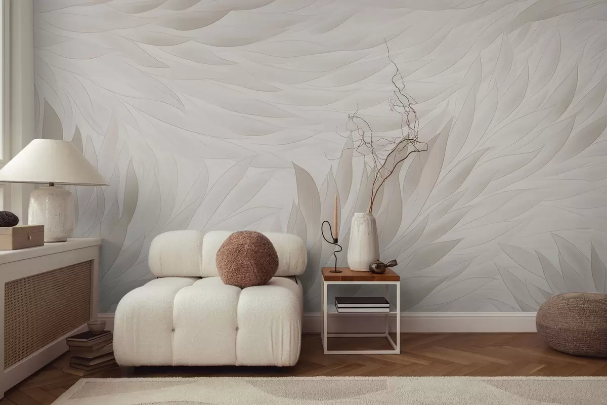 Fototapet Bølgede blade i bløde cremefarver Nr. w04610