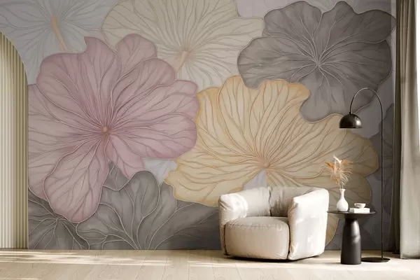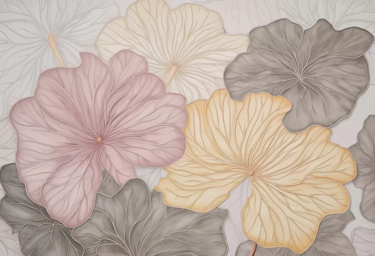 Fototapet Store pastelfarvede blade med fine årer Nr. w04612