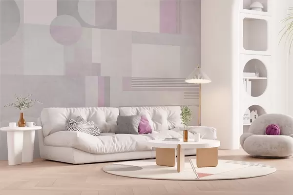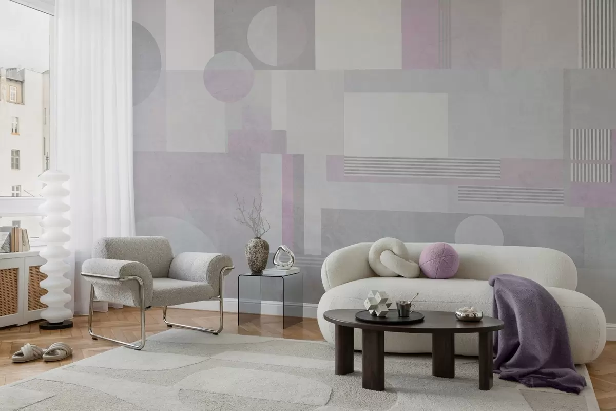 Fototapet abstrakt geometri i grå og lavendelblå nuancer Nr. w04635v1