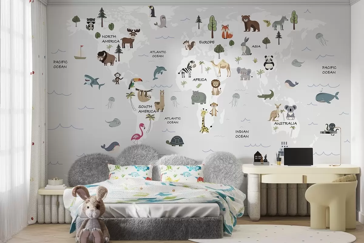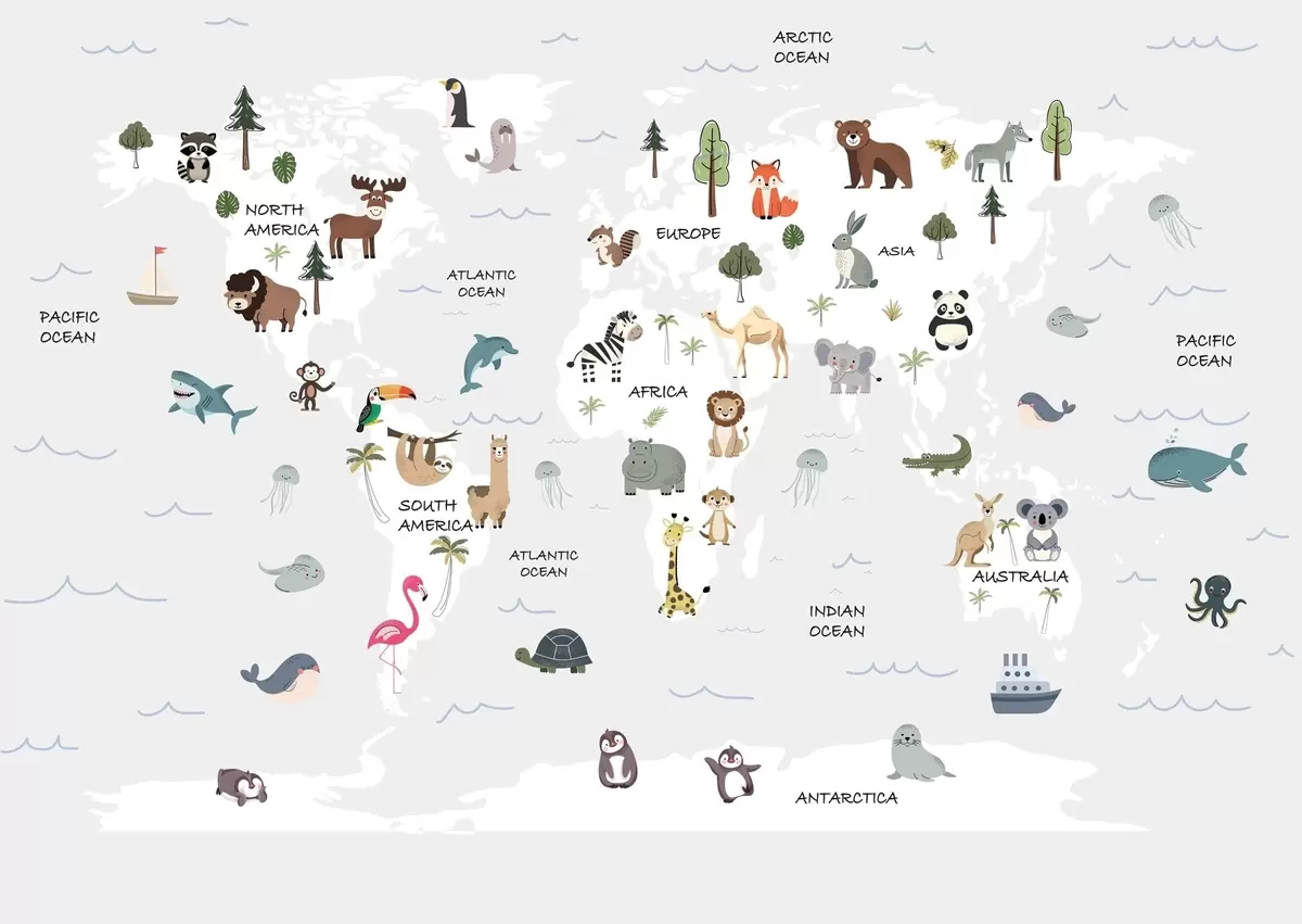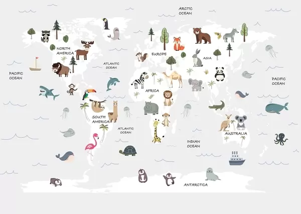Fototapet Verdenskort med dyr Nr. w04663