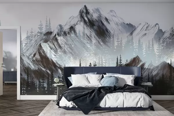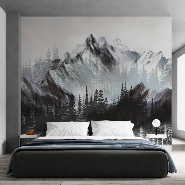 Fototapet Bjerge og nåleskov Nr. w04666v1