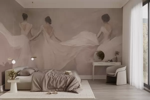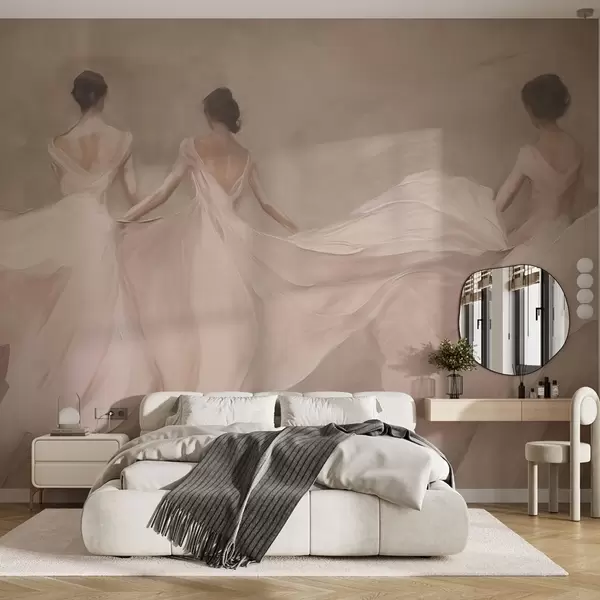 Fototapet Tre kvinder i lyserøde kjoler, flydende stof, blødhed Nr. w04709