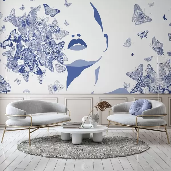 Fototapet Silhuet af et ansigt blandt sommerfugle Nr. w04778v1