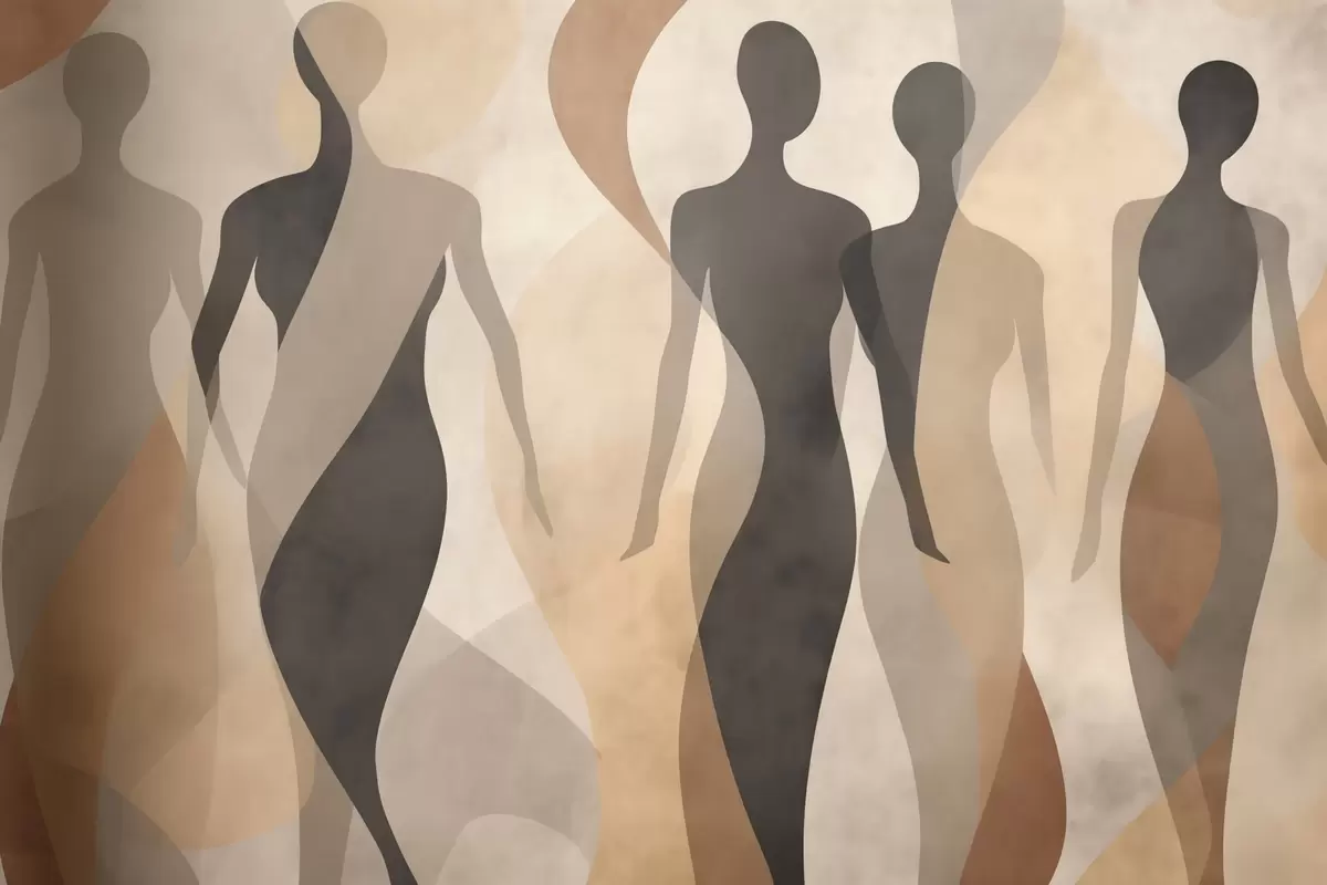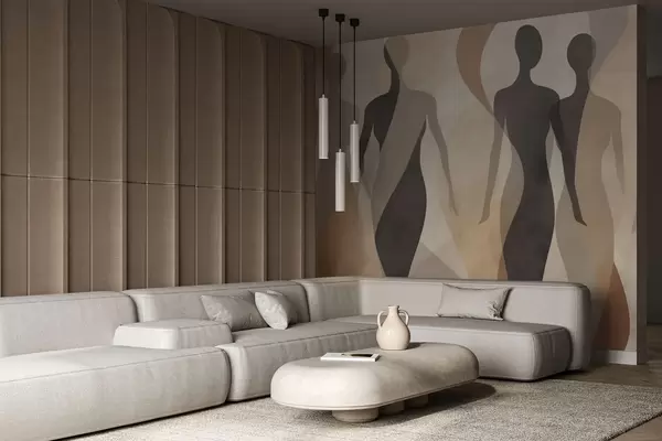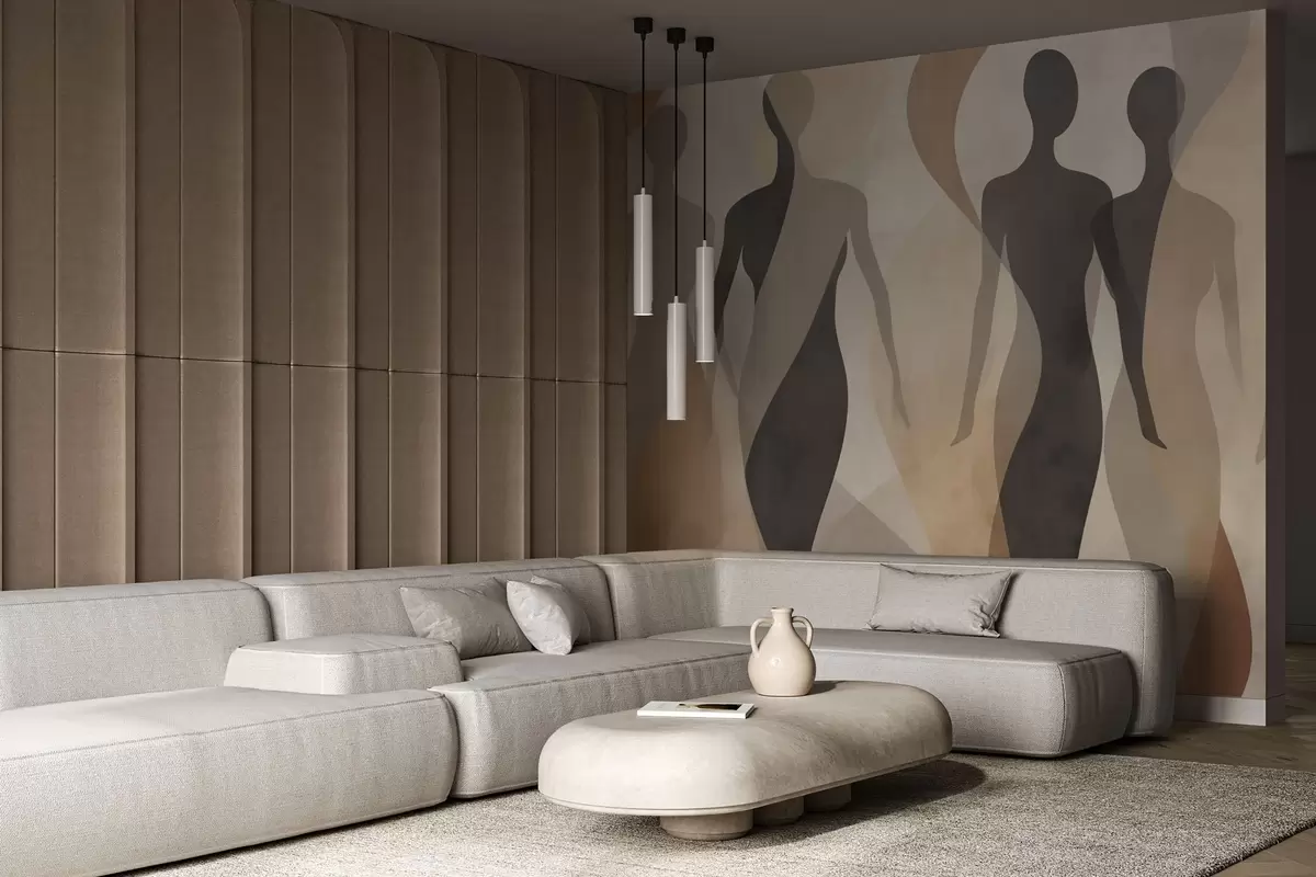 Fototapet Silhuetfigurer og bløde bølger i varme beige-grå toner Nr. w04787