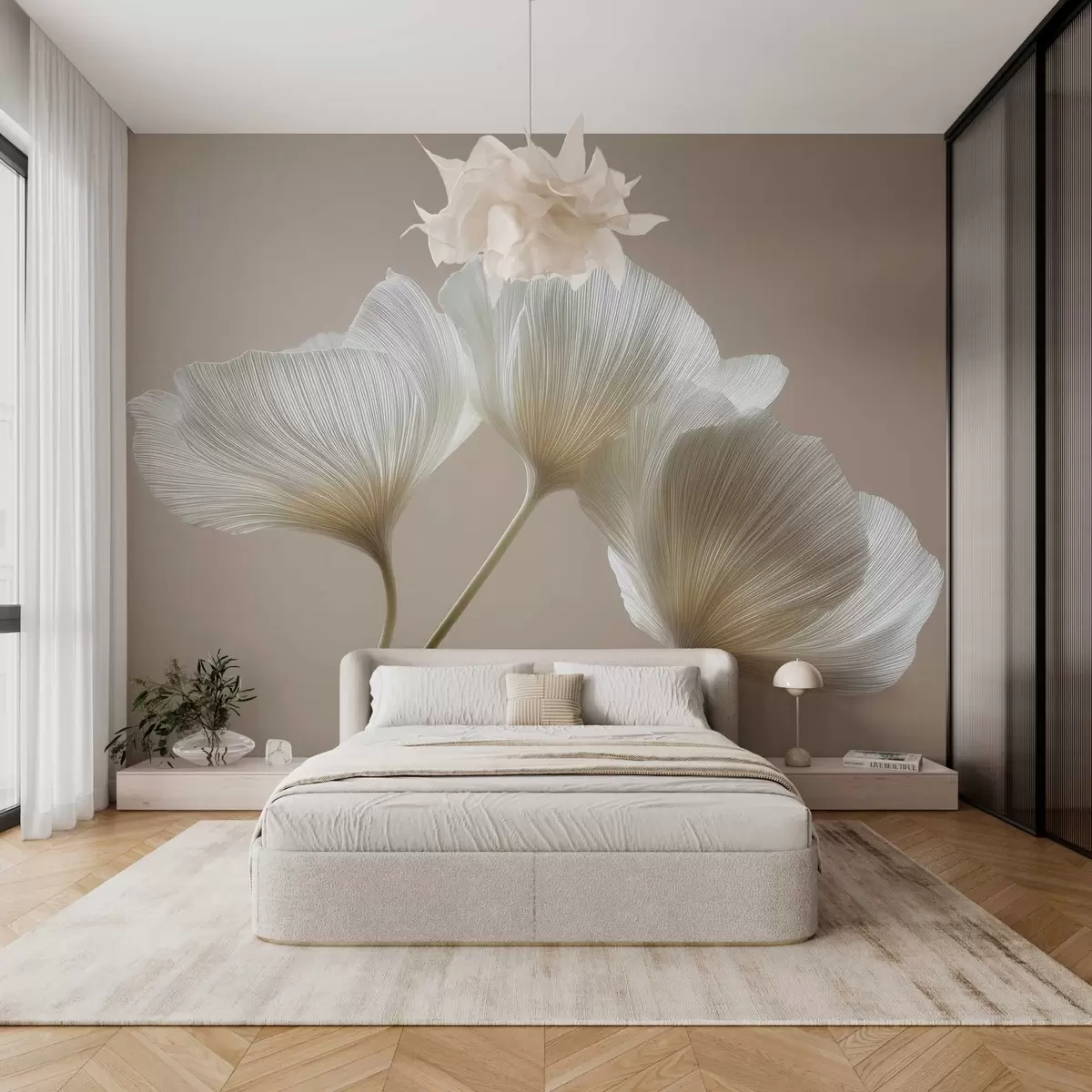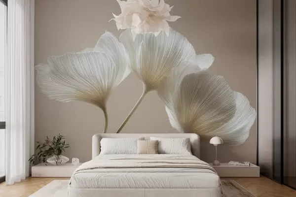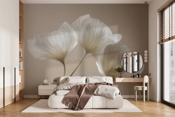 Fototapet tre delikate blomster på en beige baggrund Nr. w04810
