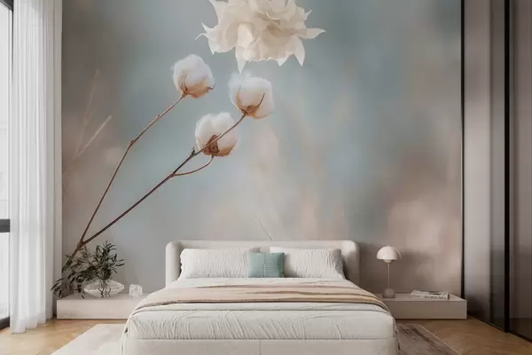 Fototapet tre bomuldsblomster på en sløret baggrund Nr. w04820