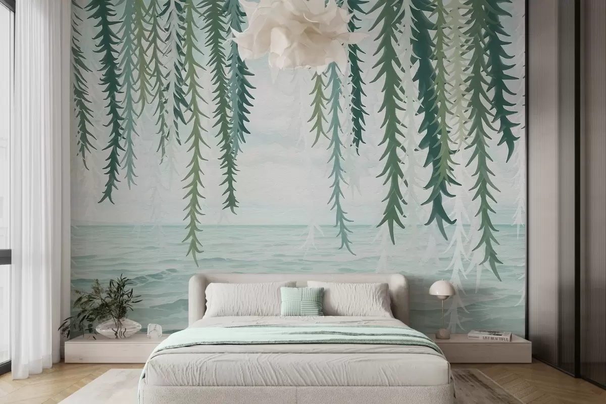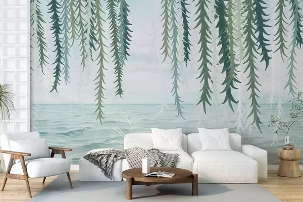Fototapet Delikate vinstokke hængende over vand i akvarelstil Nr. w04830