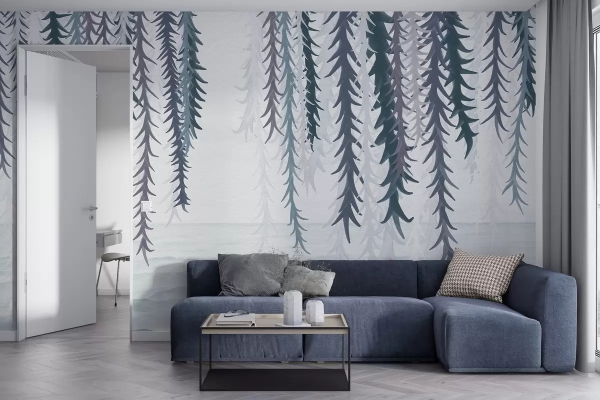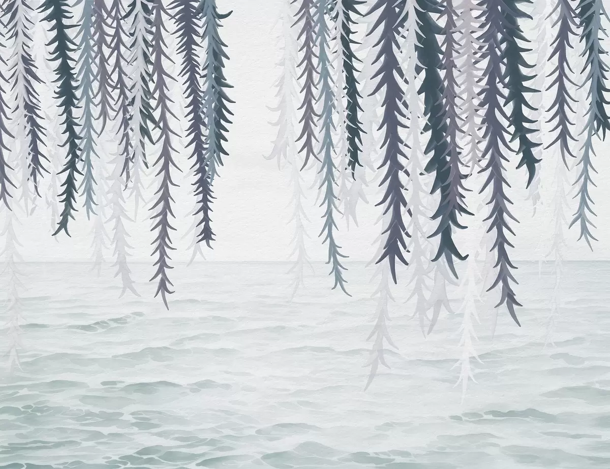 Fototapet Delikate vinstokke hængende over vand i akvarelstil Nr. w04830v3