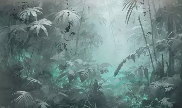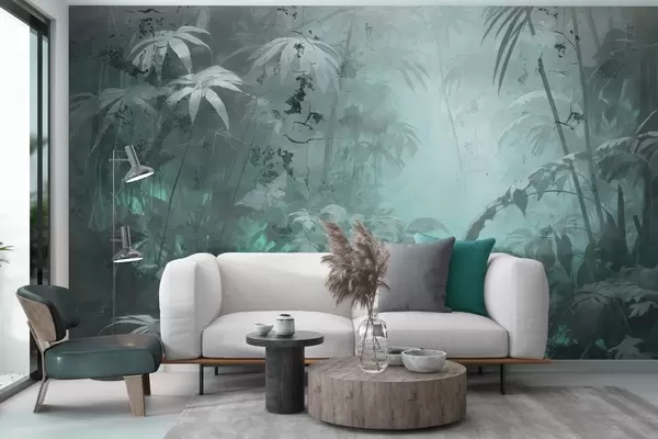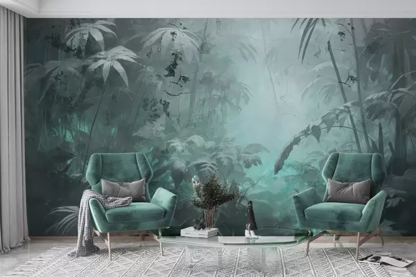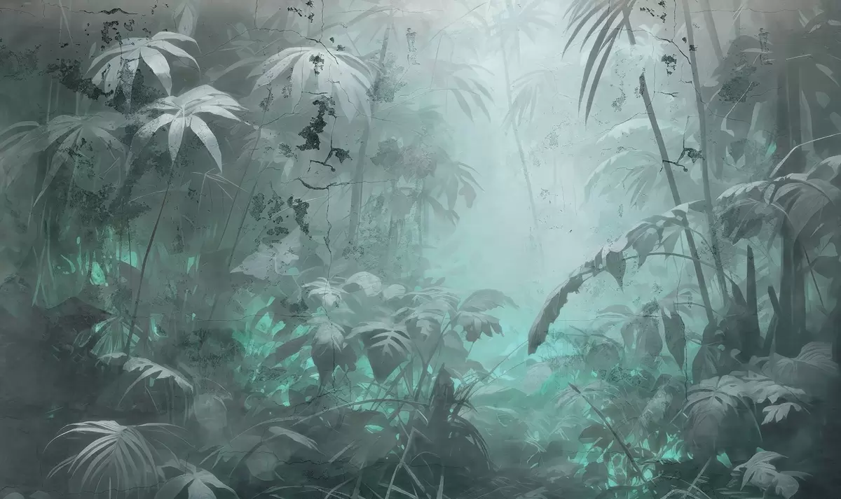 Fototapet Malet jungle bag en grunge betonmur Nr. w04833v1
