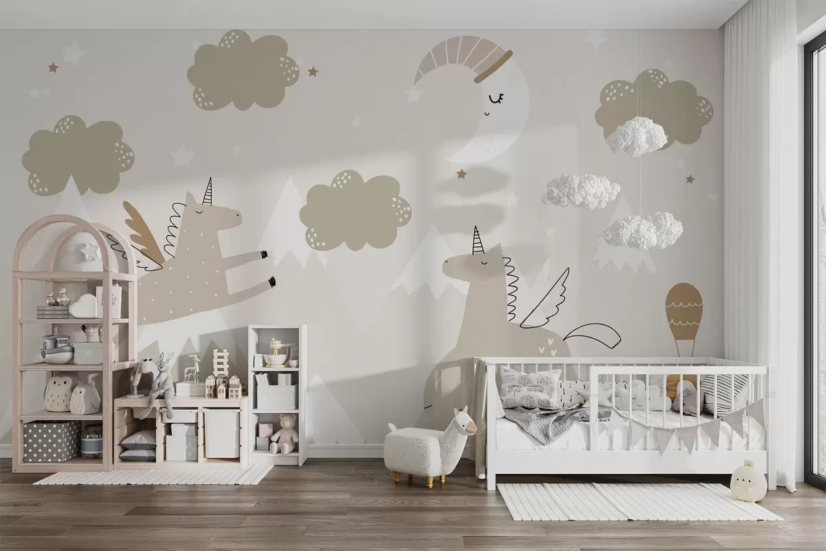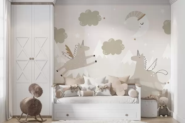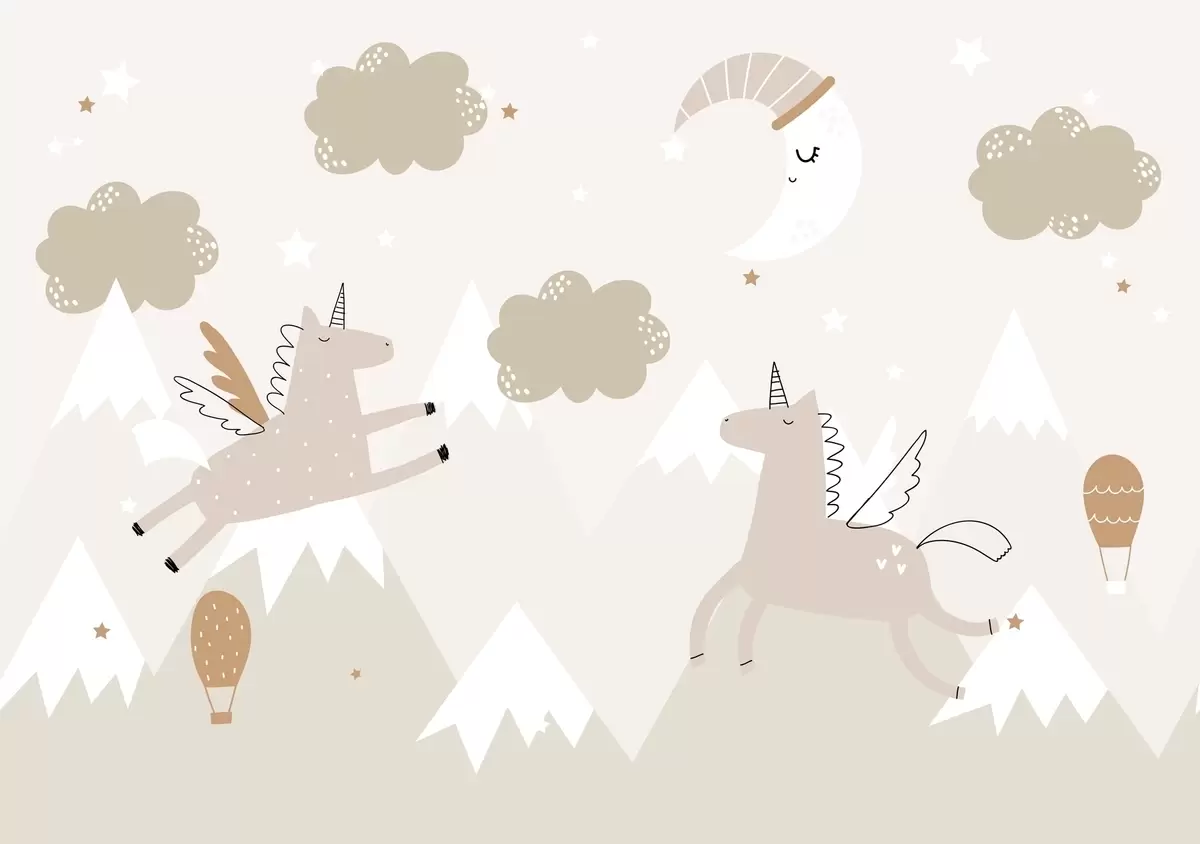 Fototapet Sovende måne, enhjørninger og balloner Nr. w04886