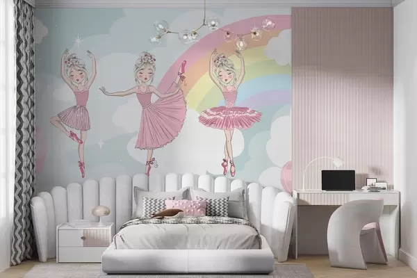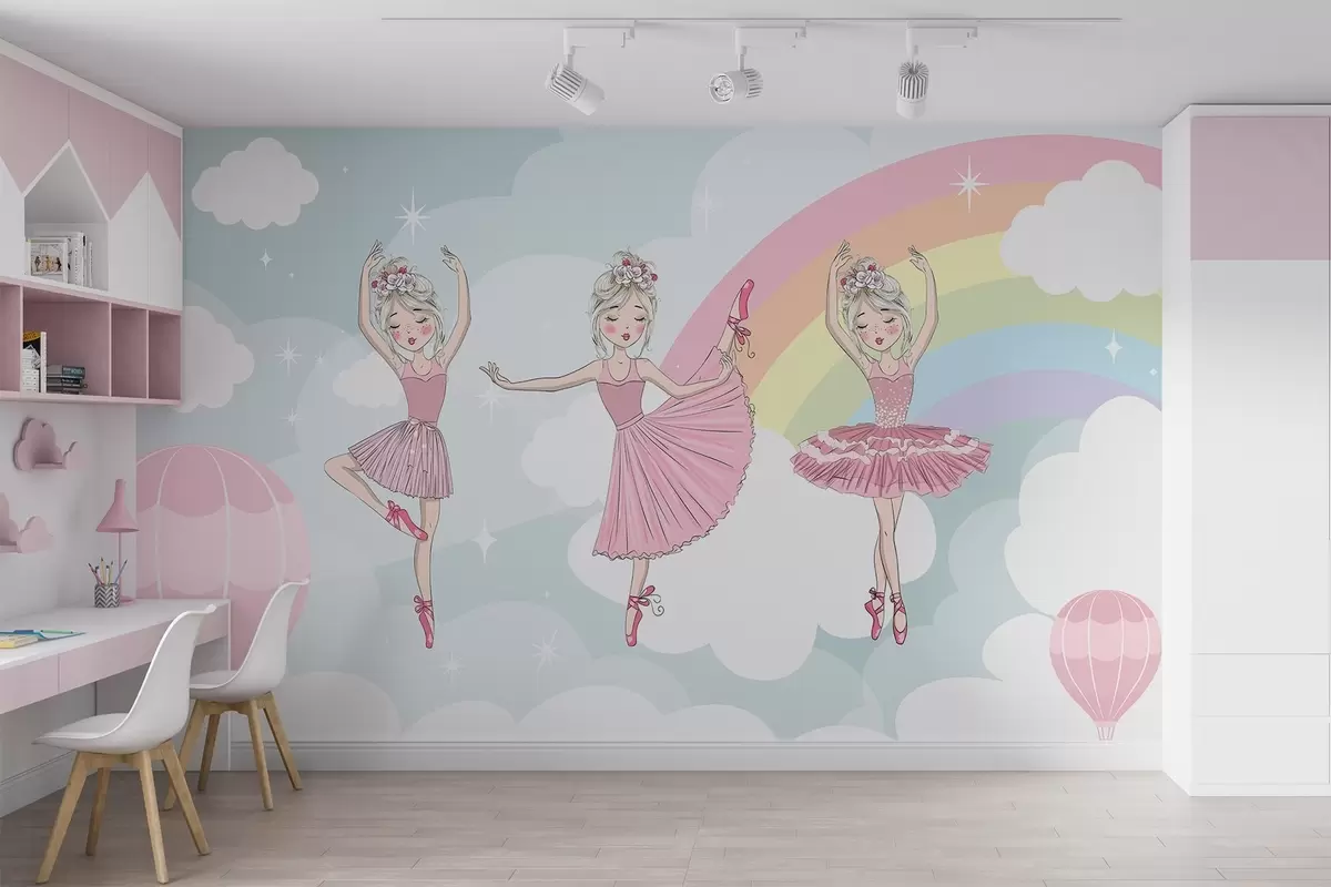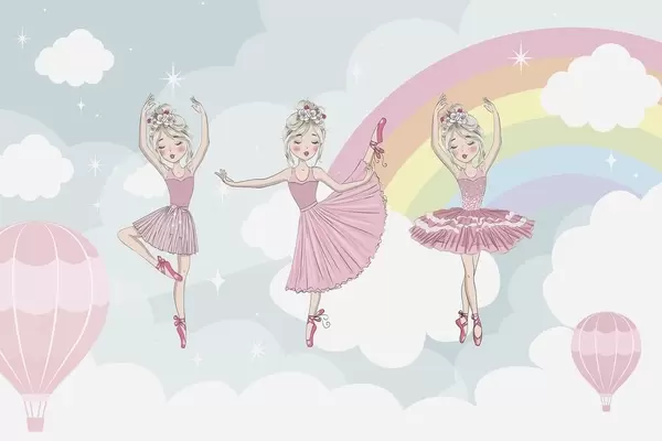 Fototapet Prinsesser med himlen og regnbuen i baggrunden Nr. w04907
