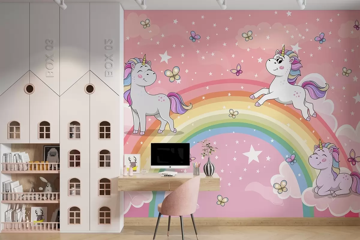 Fototapet Enhjørninger på en regnbue Nr. w04930