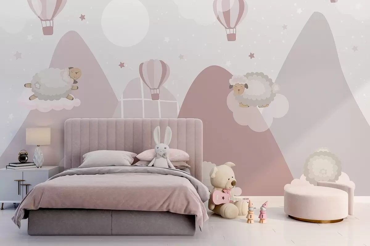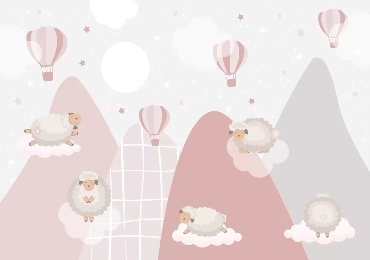 Fototapet Sovende får på lyserøde bjerge Nr. w04932