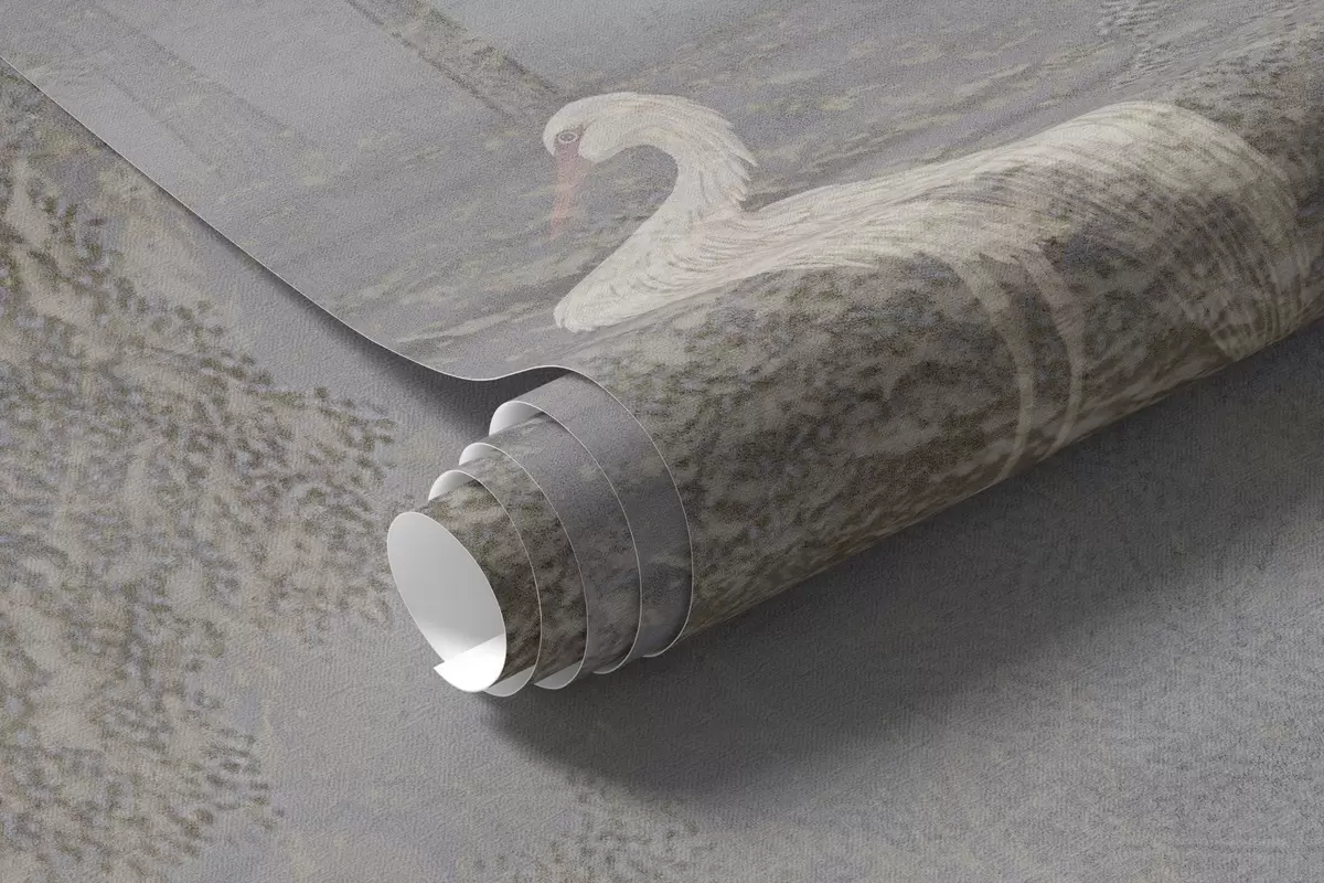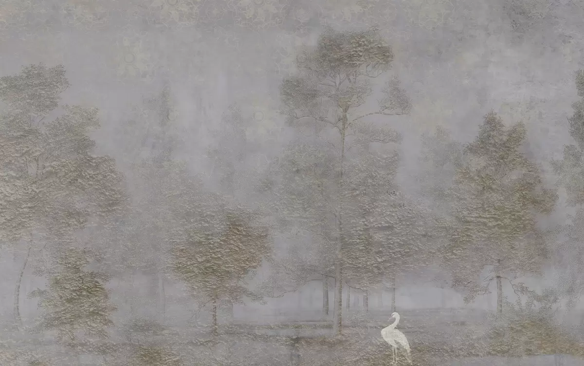 Fototapet Tåget skov med en hvid hejre og blød tekstur Nr. w04953