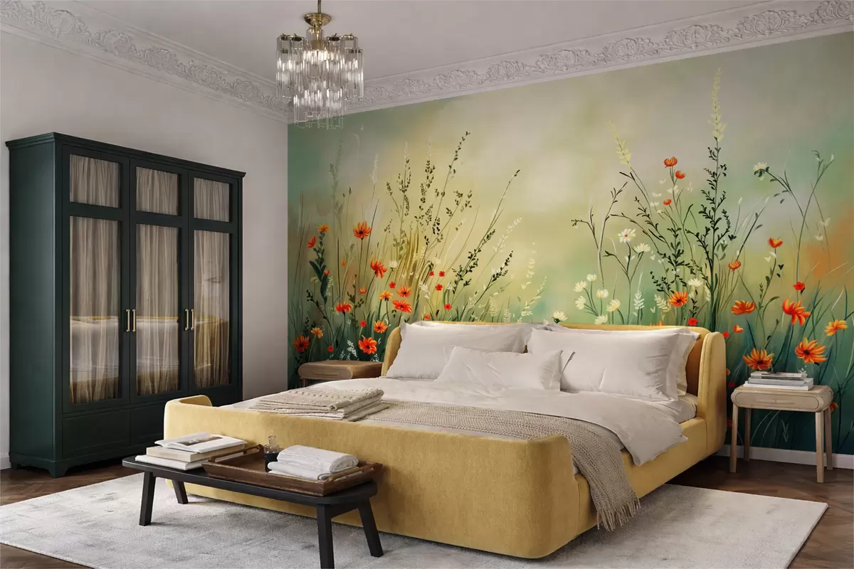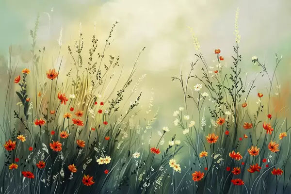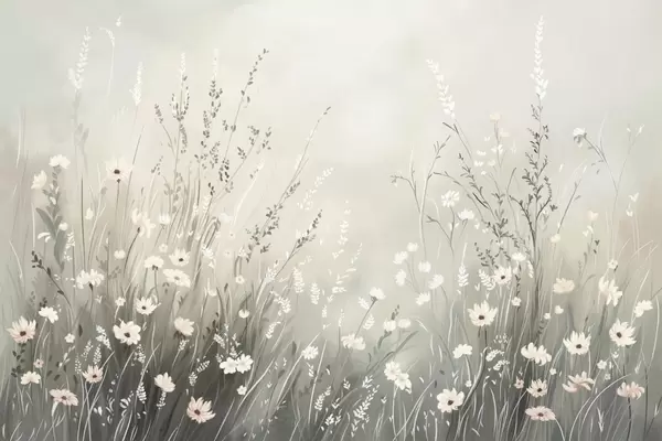 Fototapet Engblomster og græs i blød, malerisk stil Nr. w05015