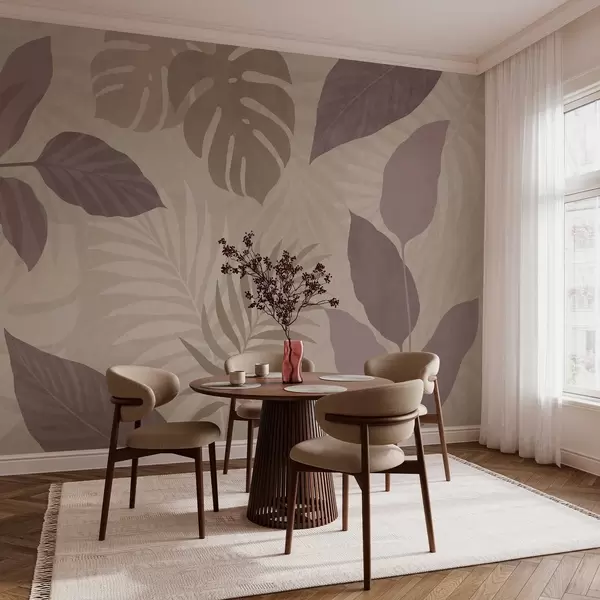Fototapet strukturerede tropiske blade på en sandfarvet baggrund Nr. w05063