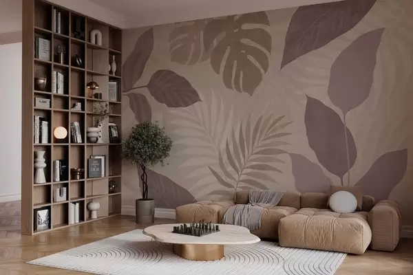 Fototapet strukturerede tropiske blade på en sandfarvet baggrund Nr. w05063