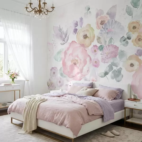 Fototapet Blød akvarelkomposition med blomster og blade Nr. w05093