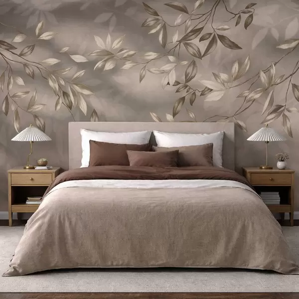 Fototapet Delikate bladrige grene i beige nuancer på en lys baggrund Nr. w05113v2
