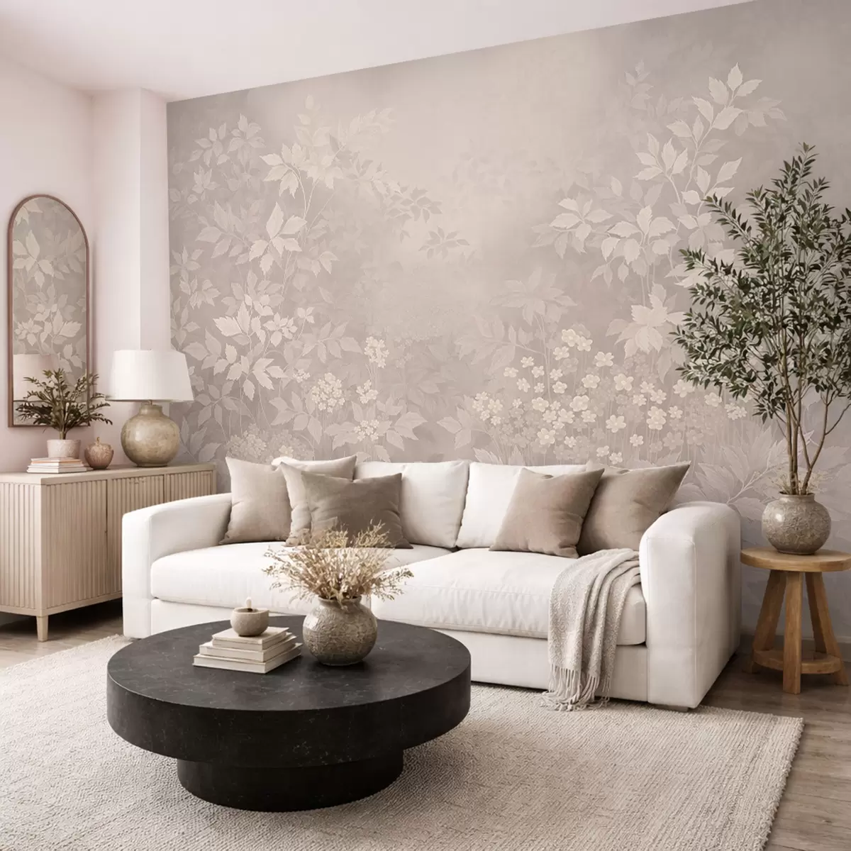 Fototapet Let botanisk ornament med blade og små blomster Nr. w05115
