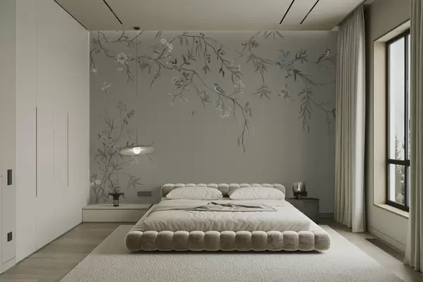Fototapet Blomstermønster med fugle på kølig baggrund Nr. w05127v6