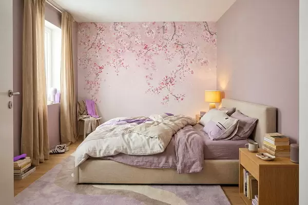 Fototapet Grene med lyserøde blomster på en blød pastelfarvet baggrund Nr. w05129v1