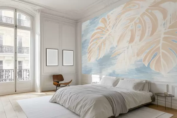 Fototapet Abstrakte blade i varme beige nuancer på en lys baggrund Nr. w05130