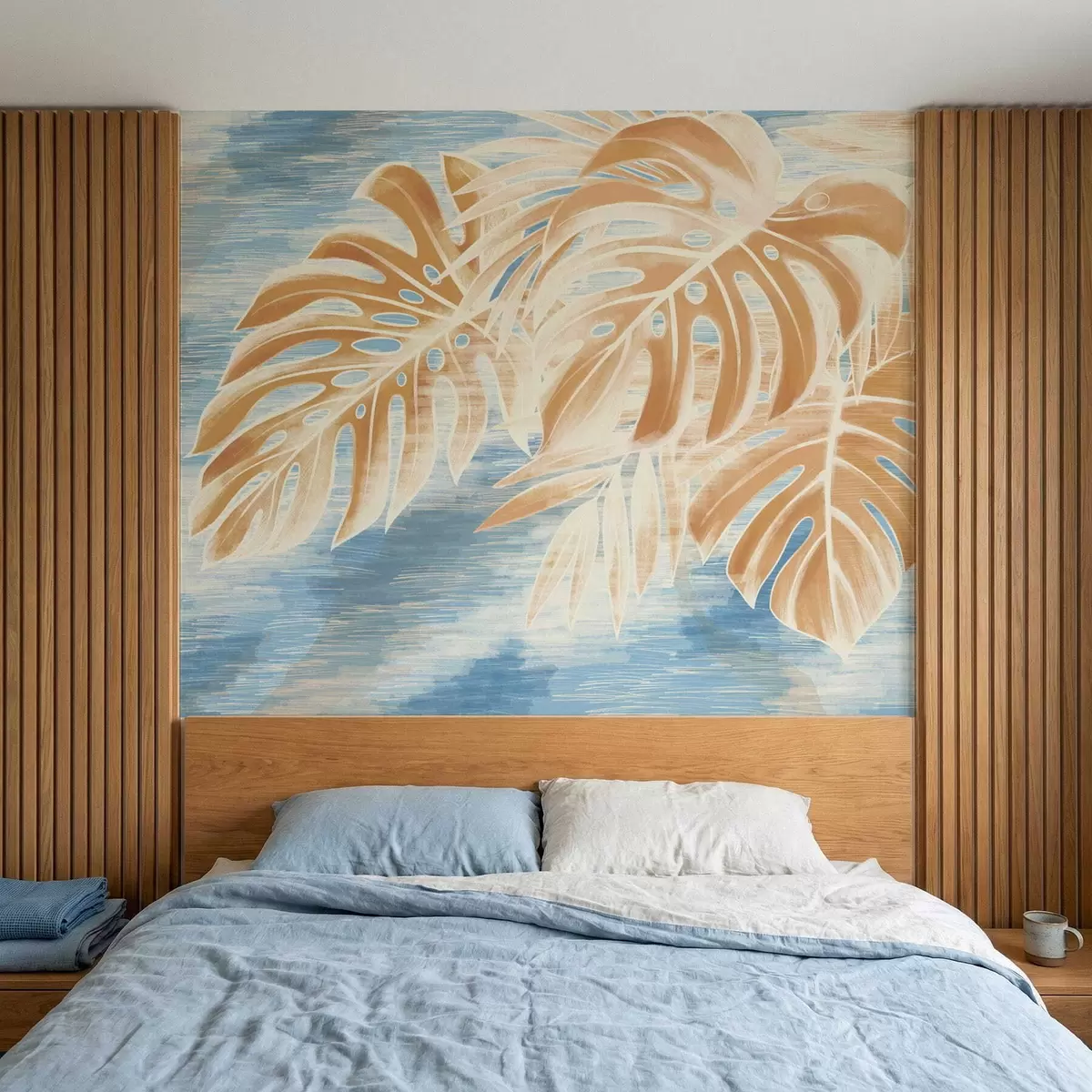 Fototapet Blade i lyse sandfarver på blå baggrund Nr. w05130v1