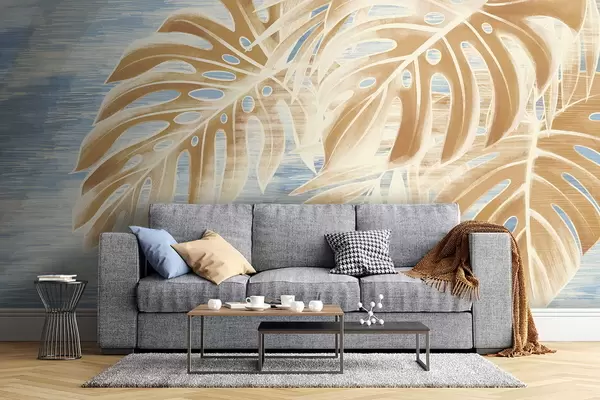 Fototapet Blade i lyse sandfarver på blå baggrund Nr. w05130v1