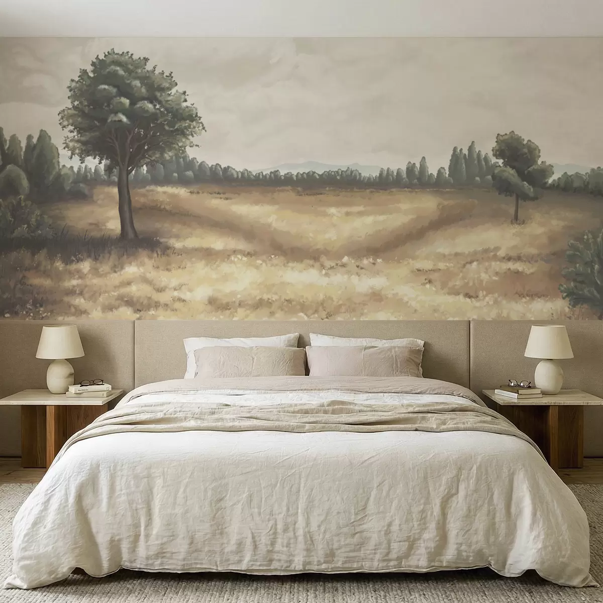 Fototapet Malet landskab med træer og åben mark Nr. w05131
