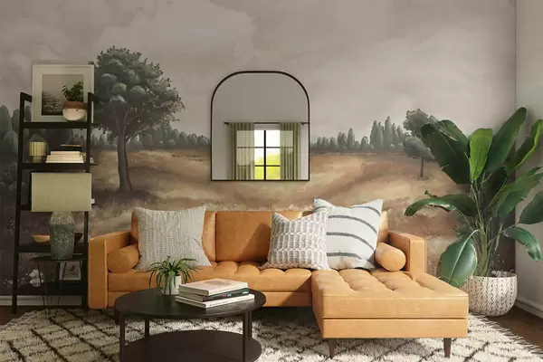 Fototapet Malet landskab med træer og åben mark Nr. w05131